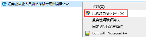Win7以上操作系统必须右键以管理员身份运行“证券业从业人员资格考试专用浏览器_版本号.exe”,弹出对话框点击确定默认安装 。